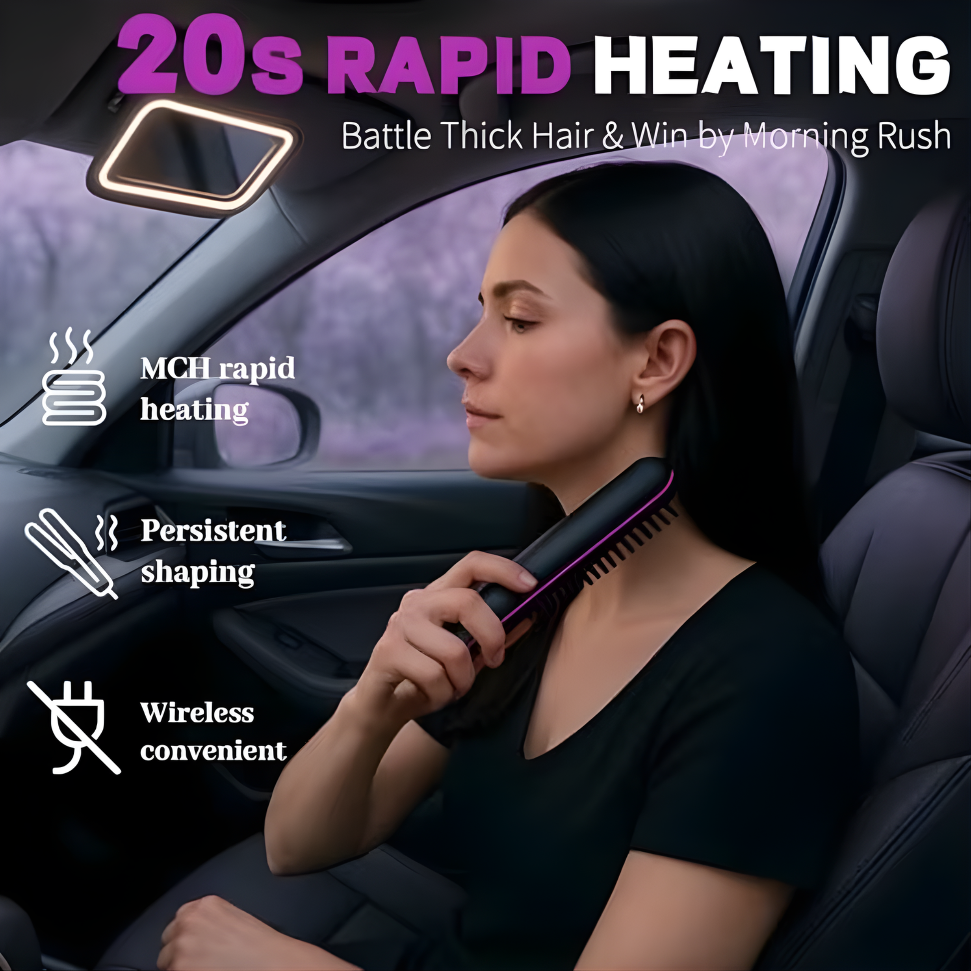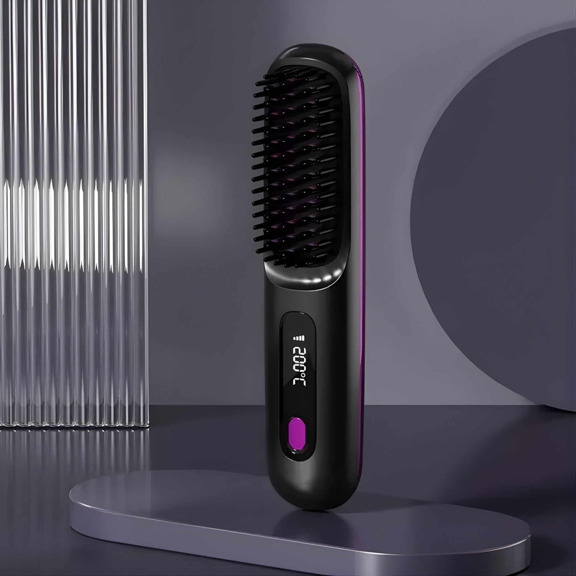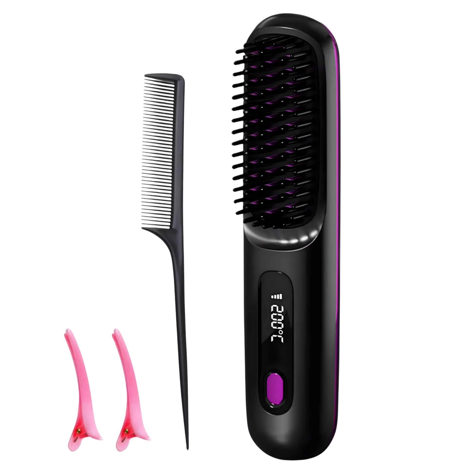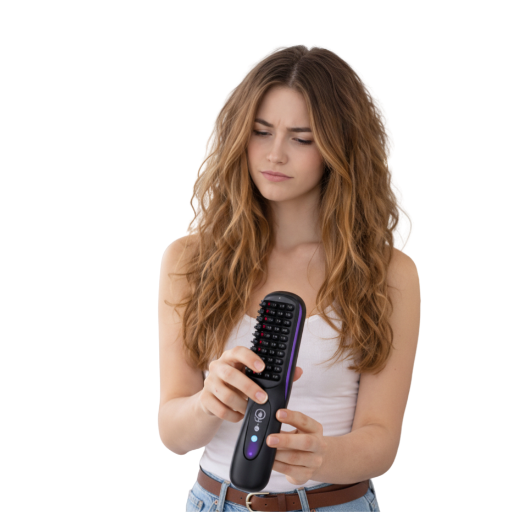 Peine alisador iónico inalámbrico con tecnología de iones negativos diseñado para lograr un cabello suave, brillante y sin frizz en minutos. Gracias a su diseño compacto y portátil, es perfecto para llevarlo en el bolso o de viaje, permitiéndote retocar tu peinado en cualquier momento y lugar. Cuenta con pantalla LED y control de temperatura ajustable, ofreciendo un peinado preciso y adaptado a todo tipo de cabello.