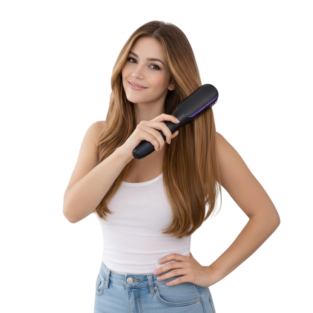 Consigue un alisado impecable, sin frizz y con acabado brillante en minutos ✨. Este peine alisador iónico portátil no solo cabe en tu bolso, también transforma tu cabello estés donde estés. Su tecnología cerámica y de iones negativos deja tu pelo suave, pulido y perfecto en cada pasada.